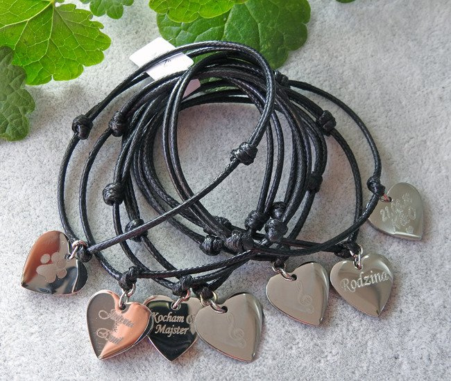Opinie o BR601 bransoletka na sznureczku z grawerem serce piękna