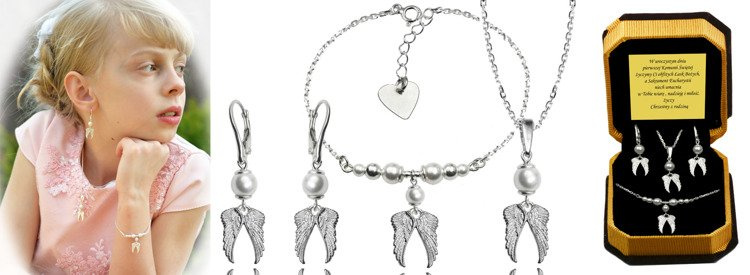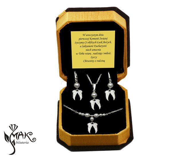Przedmiotem oferty jest elegancki komplet srebrny. Idealny na prezent urodzinowy, komunijny.
