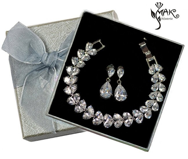 • Przedmiotem oferty jest elegancki komplet wysadzany cyrkoniami.