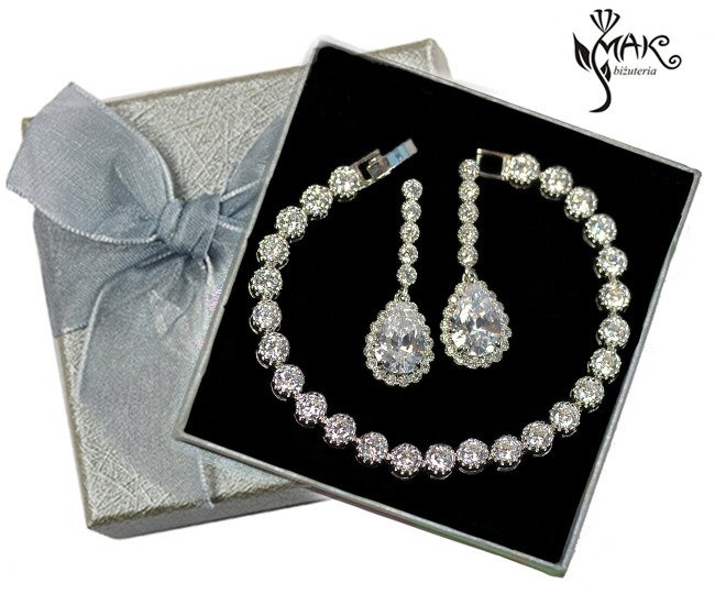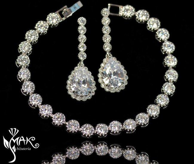 • Przedmiotem oferty jest elegancki komplet wysadzany cyrkoniami.