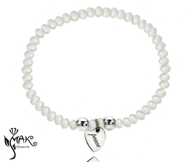 BR825 BRANSOLETKA Z GRAWEREM stal kryształki białe serce