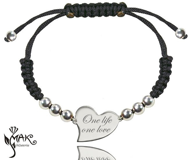 BR667 BRANSOLETKA z grawerem na sznureczku serce asymetryczne