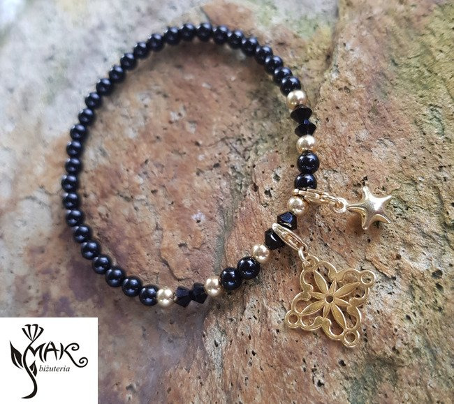 BR950 BRANSOLETKA pozłacana czarny agat, Swarovski Element