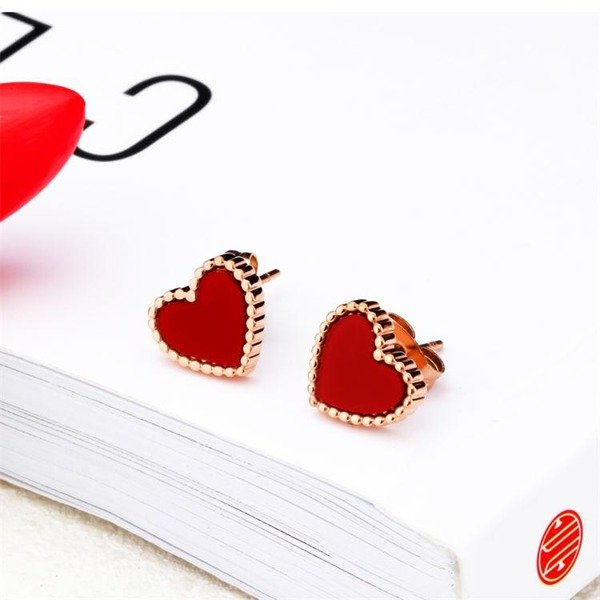 KOL599/825 KOLCZYKI serca stalowe, różowe złoto i czarna masa perłowa