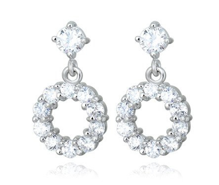 Kolczyki z ażurowymi kółeczkami wsadzanymi cyrkoniami na sztyft. Delikatne i lekkie kolczyki będą subtelnym uzupełnieniem sukni ślubnej. Kolczyki z powodzeniem mogą być używane również na mniej zobowiązujące okazje .