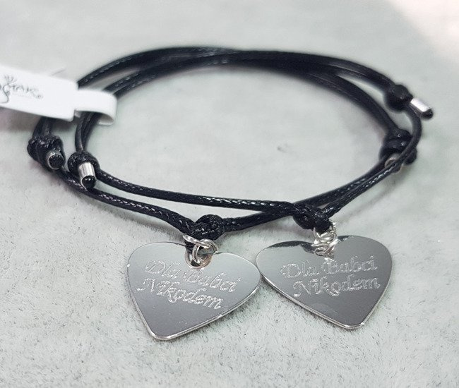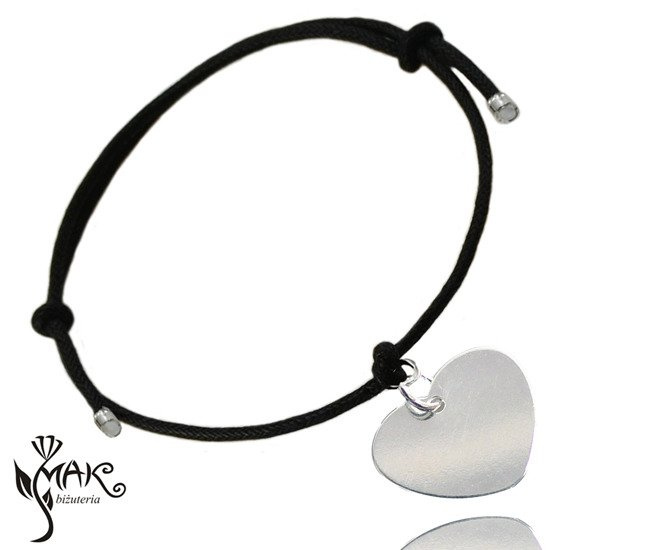 BR483 Bransoletka z grawerem serce, Srebrna 925 na sznurku