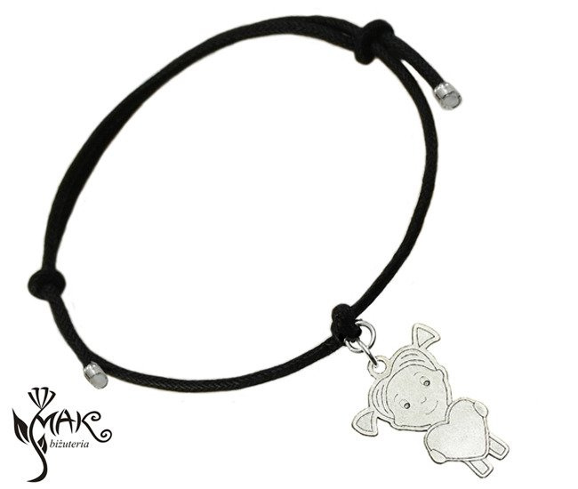 Przedmiotem oferty jest bransoletka z zawieszką w kształcie dziewczynki. Na serduszku wykonamy dowolny grawerunek.