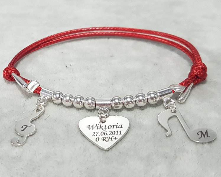 Proponujemy srebrną bransoletkę z grawerem. Bransoletka wykonana ze srebra 925 oraz sznurka dostępnego w różnych kolorach. Dużym atutem jest możliwość wyboru jednej z wielu zawieszek srebrnych oraz koloru sznurka.