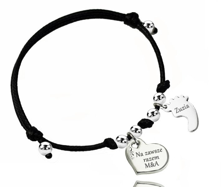 BR971 BRANSOLETKA z grawerem na sznureczku serce i stópki solidne