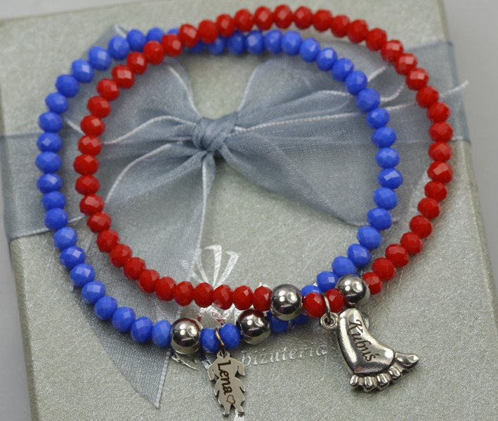 BRANSOLETKA Z GRAWEREM, BRANSOLETKA GRAWEROWANA. Bransoletka której bazą są delikatne błyszczące kryształki. W centralnej części bransoletki znajduje się stópka oraz stalowe kuleczki.