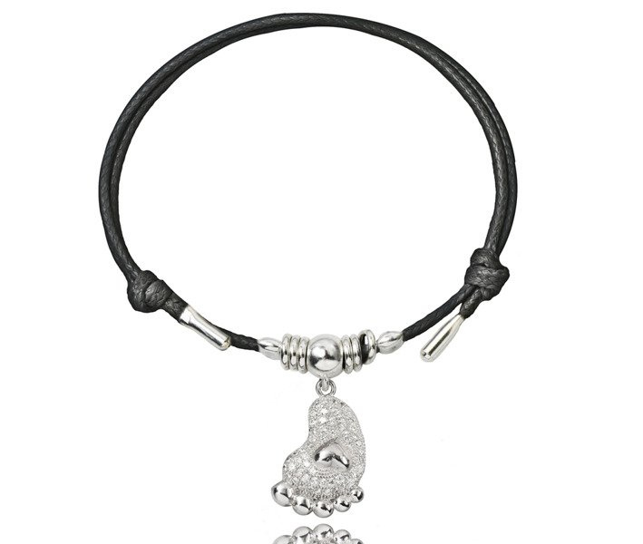 Bransoletka z piękną wysadzaną cyrkoniami stópką.