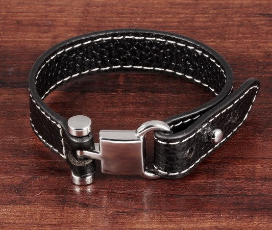 Przedmiotem oferty jest elegancka męska bransoletka skórzana z grawerem.