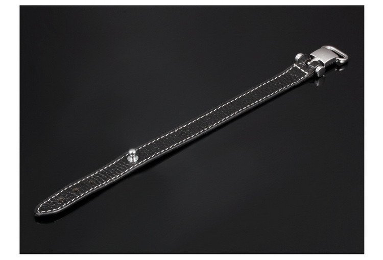 BR599/407 Bransoletka z grawerem męska, czarna białe szwy SKÓRA