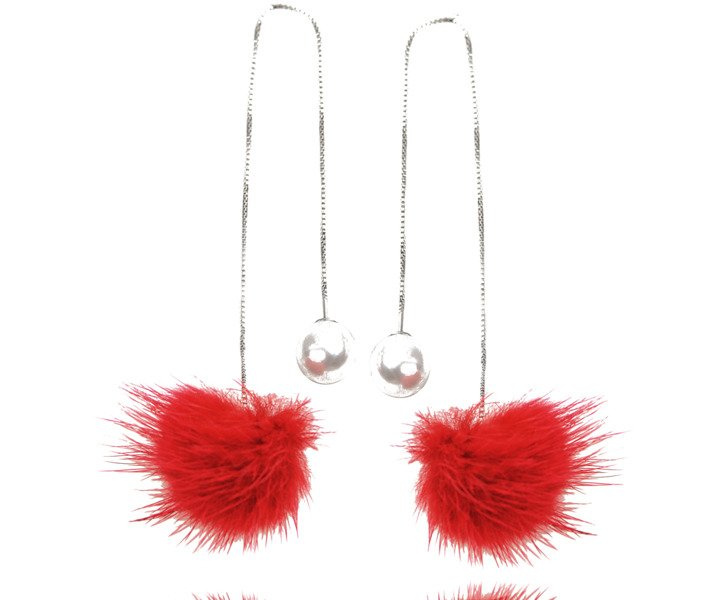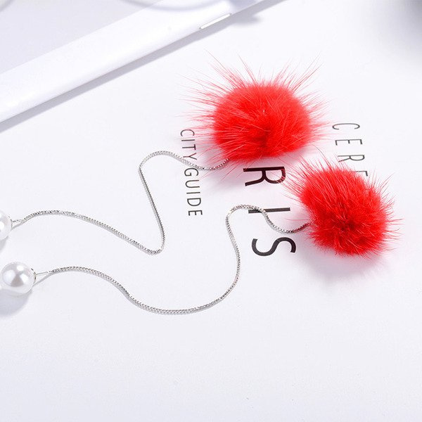 Kol 599/858 KOLCZYKI futerka, pompony długie czerwone z perłą