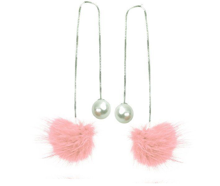 Kol 599/858 KOLCZYKI futerka, pompony długie jasno różowe z perłą