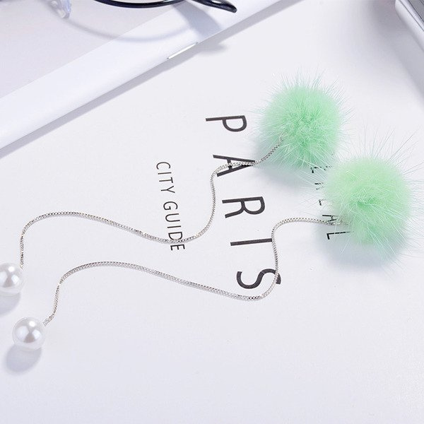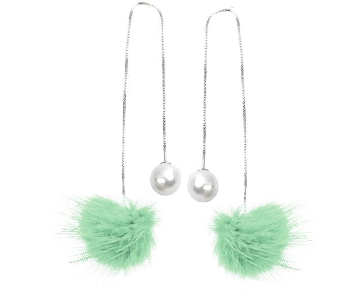 Kol 599/858 KOLCZYKI futerka, pompony długie miętowe z perłą