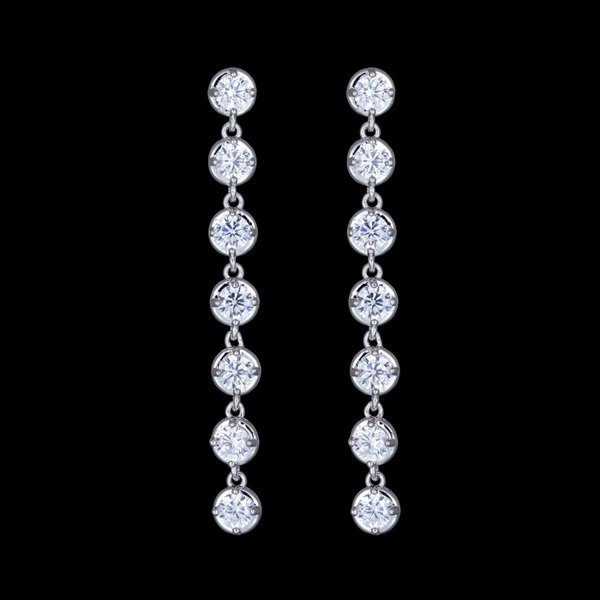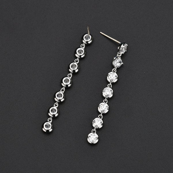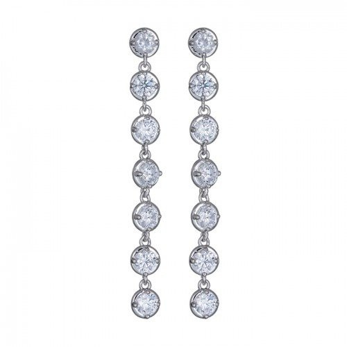 Proponujemy długie delikatne kolczyki z błyszczącymi cyrkoniami. Kształt kolczyków długi i delikatny