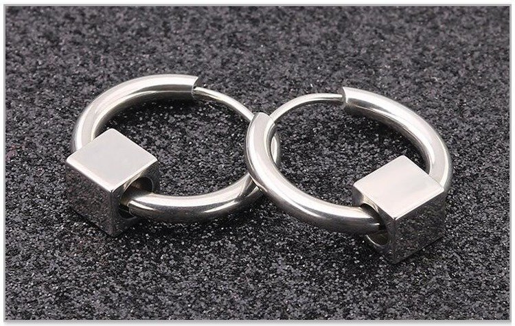 Przedmiotem oferty są damskie kolczyki ze stali szlachetnej z geometryczną ozdobą.