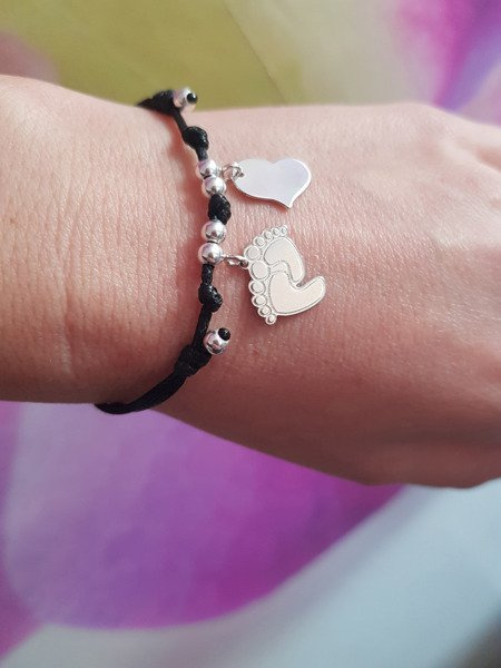 BR1001 bransoletka z grawerem serce stópki na sznurku