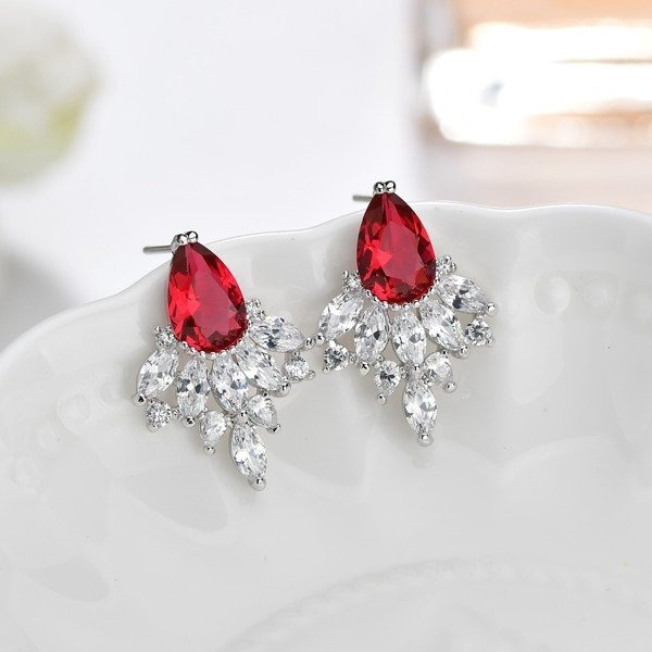 Kol 599/904 Kolczyki na ślub, długie z cyrkoniami pazurki rubinowe