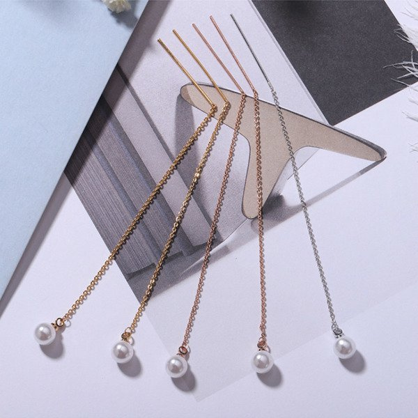 Przedmiotem oferty są kolczyki przeciągane z białą perełką.
