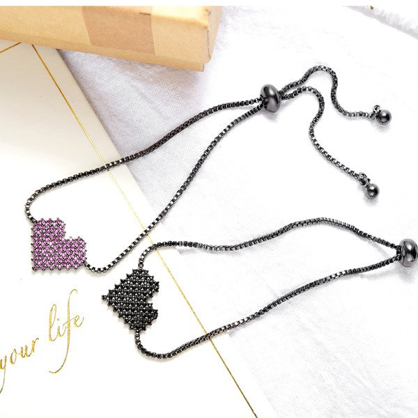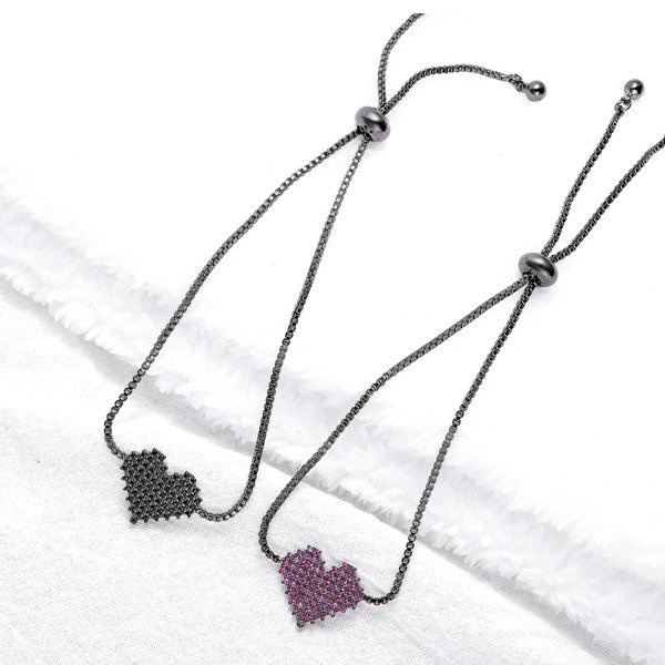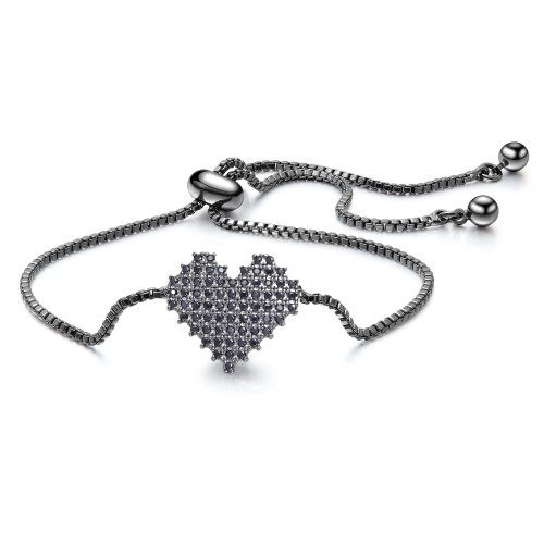 BR599/890  czarny rod  CYRKONIE BRANSOLETKA serce piksele