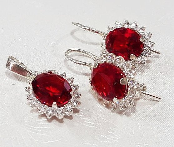 480/81 komplet srebrny owale z cyrkoniami rubinowymi