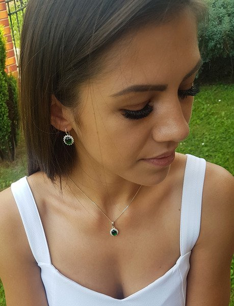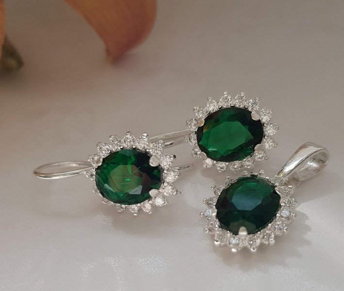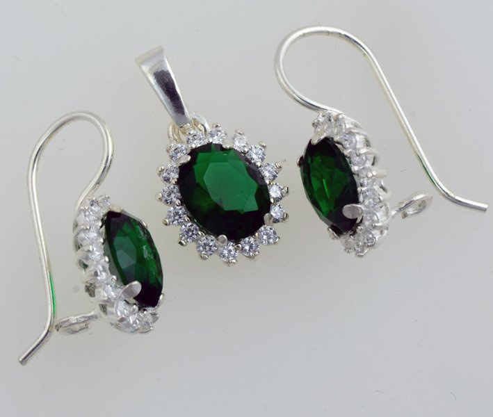 480/92  komplet srebrny owale z cyrkoniami szmaragdowymi