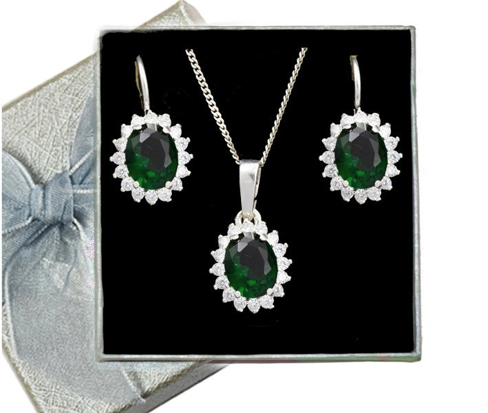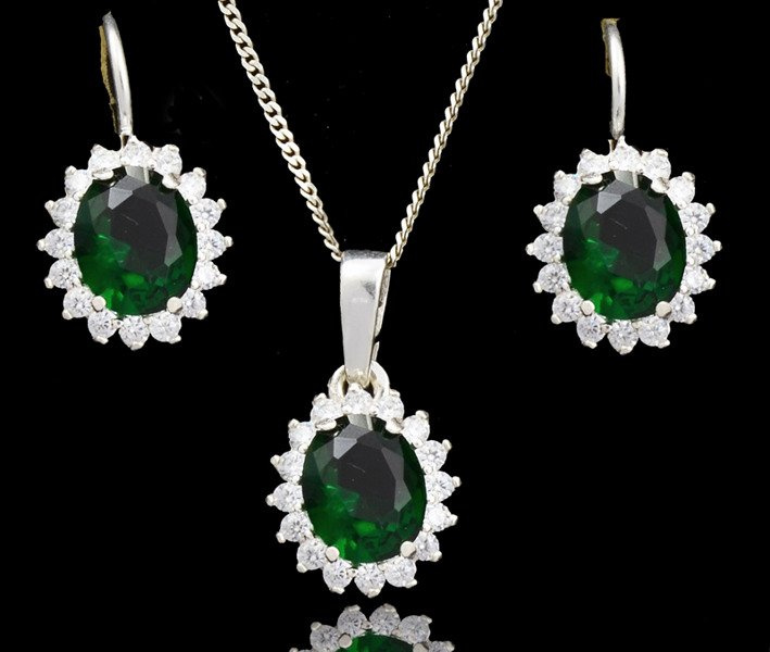 480/92 komplet srebrny owale z cyrkoniami szmaragdowymi