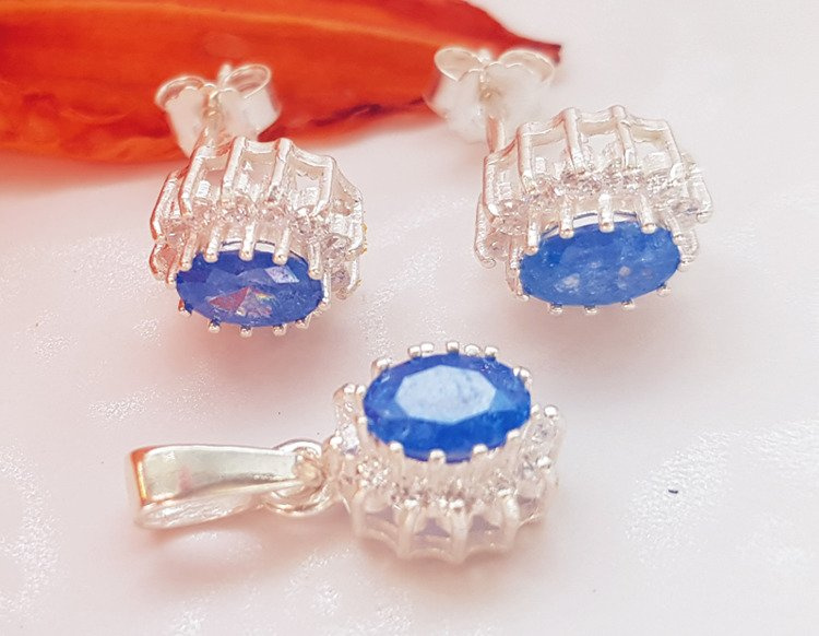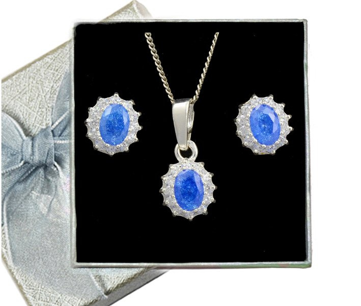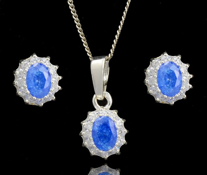 480/90 komplet srebrny owale z niebieskimi cyrkoniami