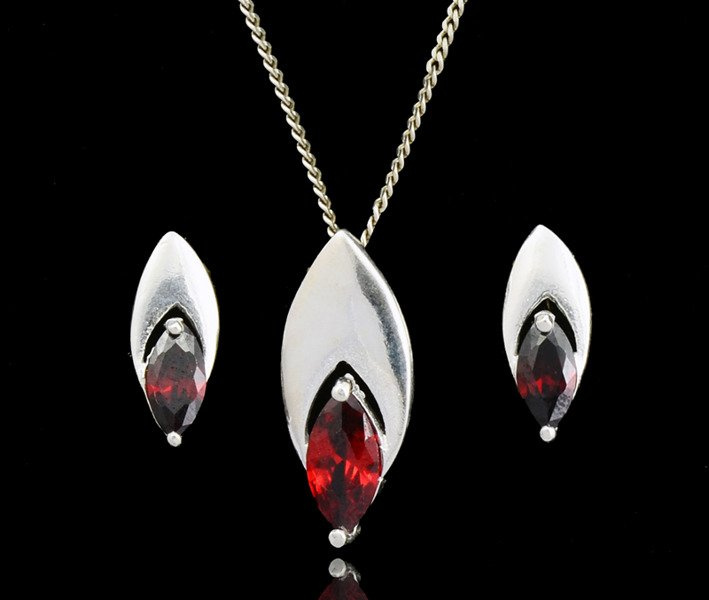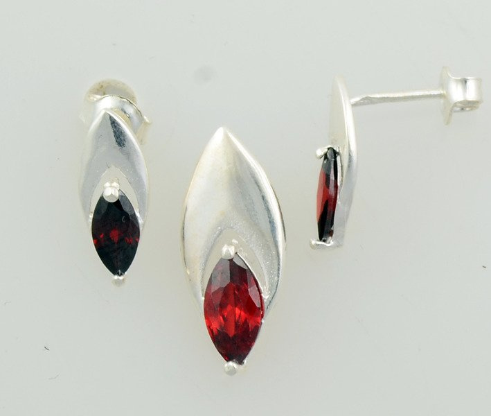 480/101 komplet srebrny łezki z czerwonymi cyrkoniami
