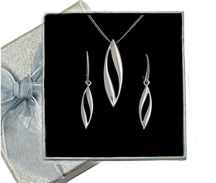 Komplet pakowany w  srebrne pudełeczko z kokardką.