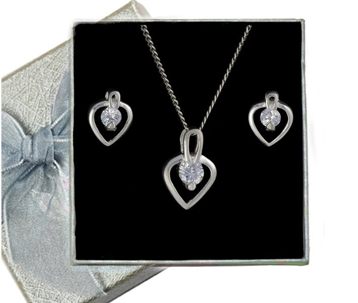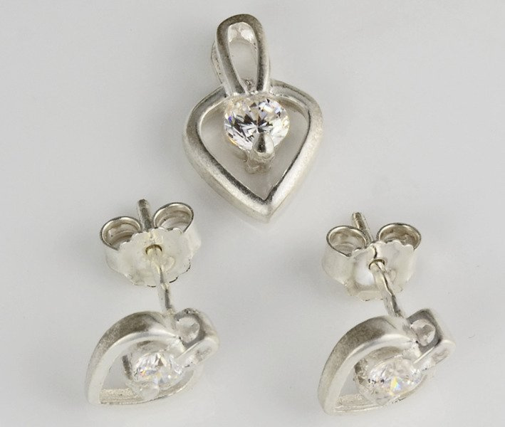 480/166 komplet srebrny serduszka z błyszczącymi cyrkoniami