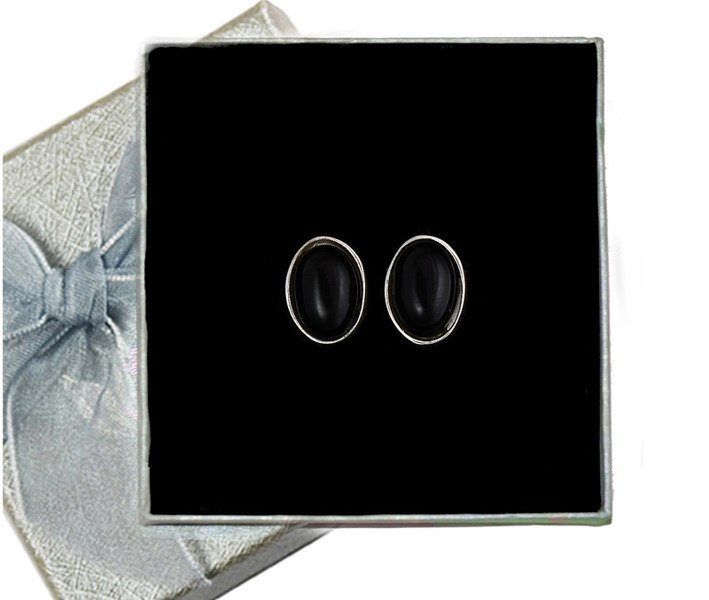 480/128  kolczyki srebrne owalne onyks
