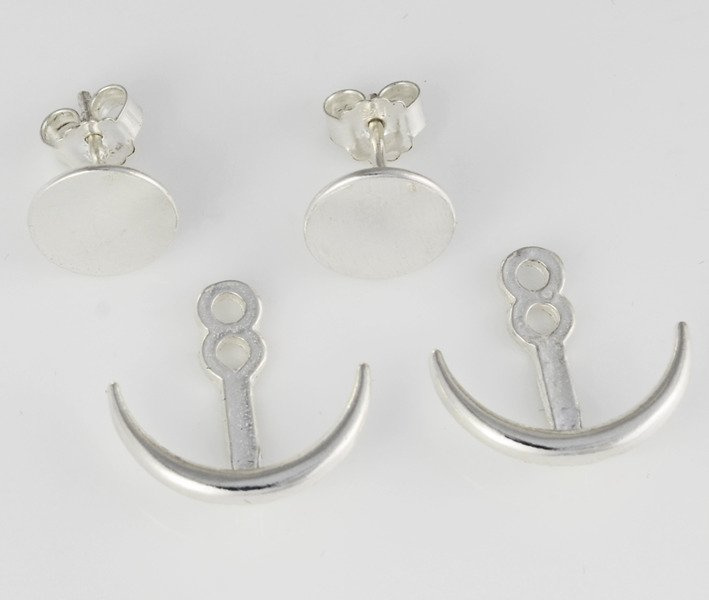 Kolczyki srebrne w kształcie kotwic.