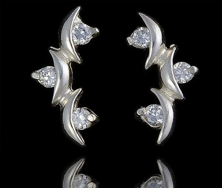 Kolczyki srebrne z trzema błyszczącymi cyrkoniami.