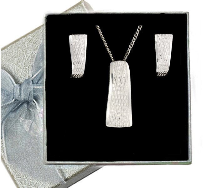 Komplet pakowany w  srebrne pudełeczko z kokardką.