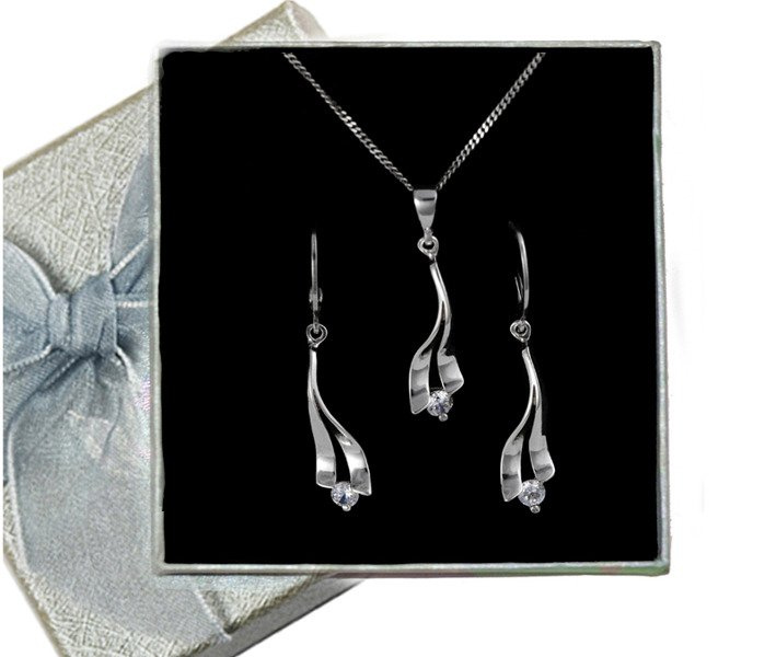Komplet pakowany w srebrne pudełeczko z kokardką.