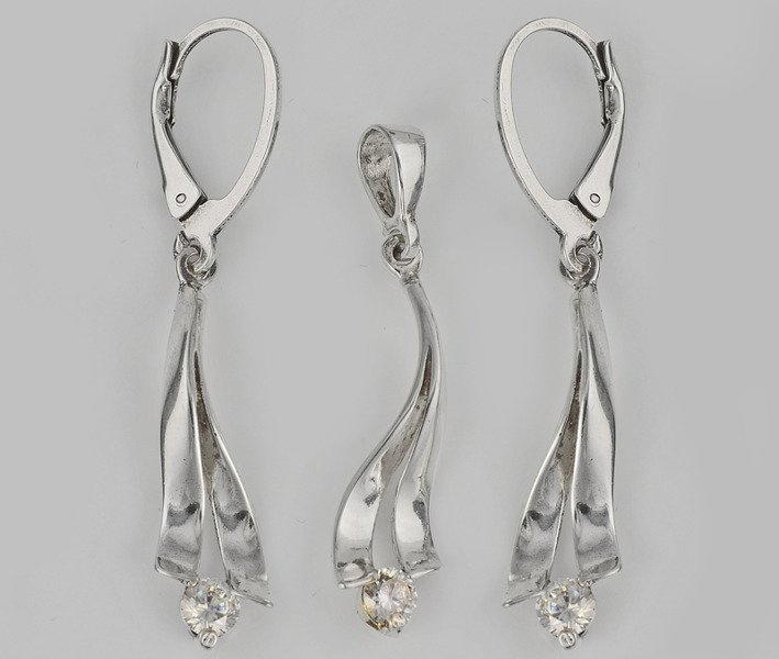 480/224 komplet srebrny podłużny z błyszczącymi cyrkoniami