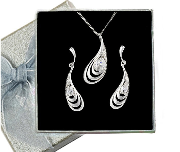 Komplet pakowany w srebrne pudełeczko z kokardką.