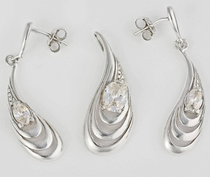 480/230 komplet srebrny z błyszczącymi cyrkoniami