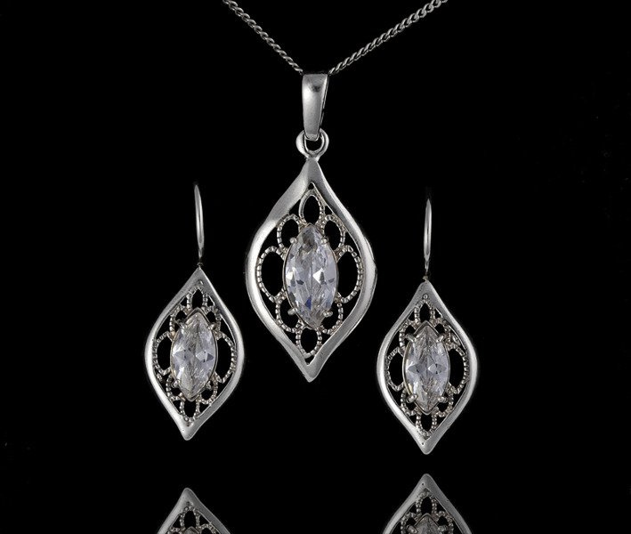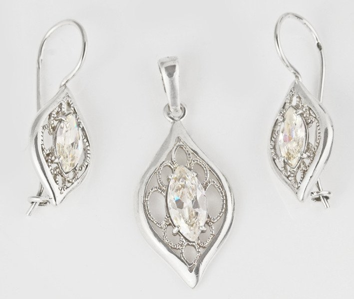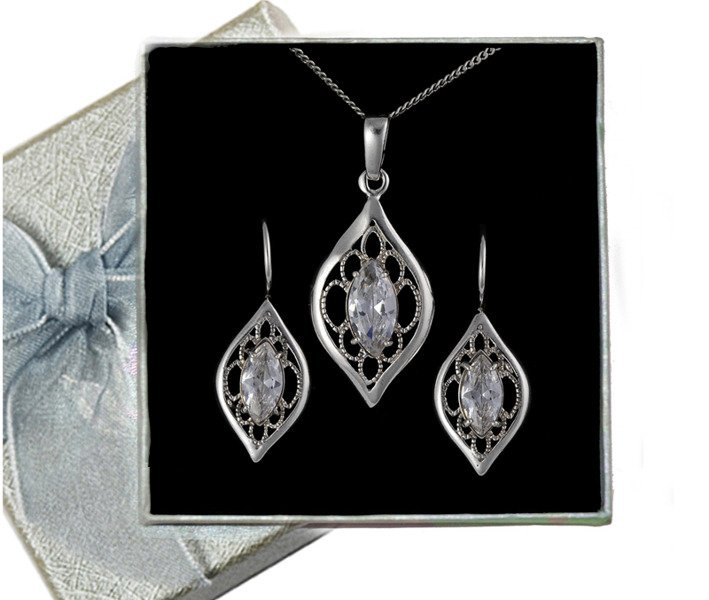 480/238 komplet srebrny ażurowy z błyszczącymi cyrkoniami