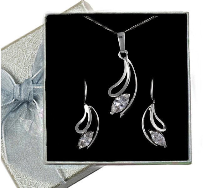 Komplet pakowany w srebrne pudełeczko z kokardką.