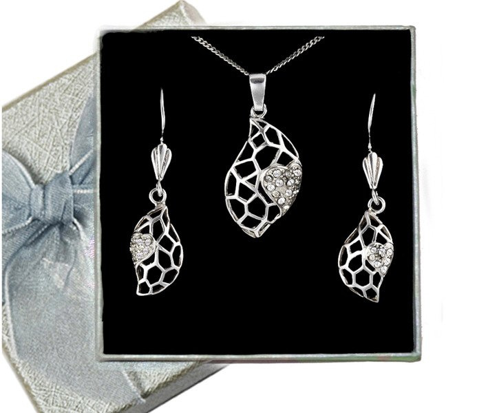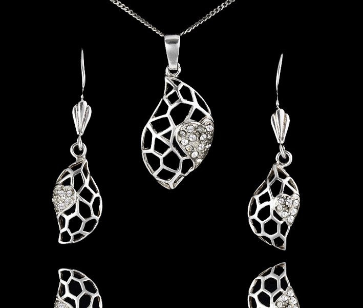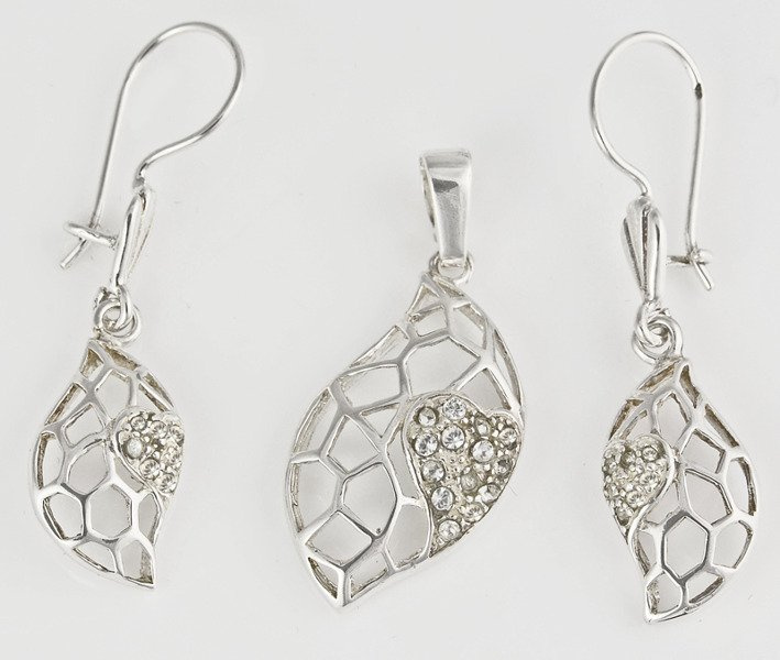 480/250 komplet srebrny ażurowy z błyszczącymi cyrkoniami