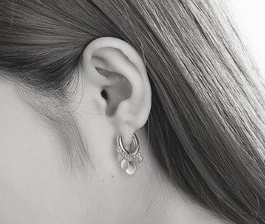 Proponujemy kolczyki w formie kółek. Na kolczykach podwieszone są okrągłe blaszki o różnych wielkościach.