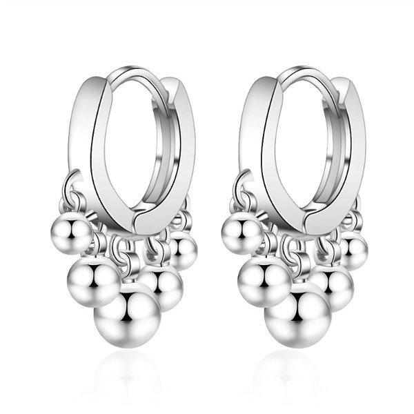 Proponujemy kolczyki w formie kółek. Na kolczykach podwieszone są kuleczki o różnych wielkościach.