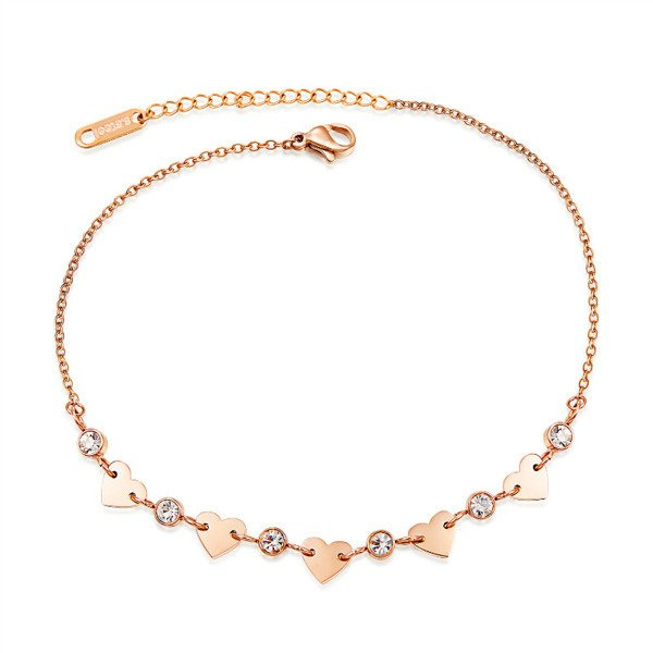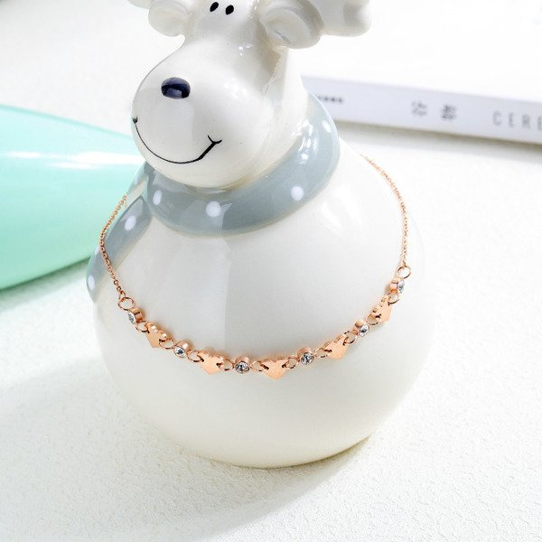 Po środku łańcuszka znajdują się delikatne serduszka przeplatane cyrkoniami. Elementy ozdobne tworzą ciekawą całość oraz dodają bransoletce lekkości.