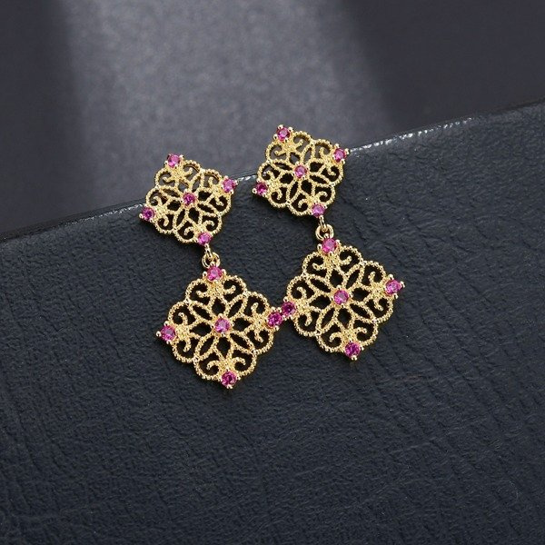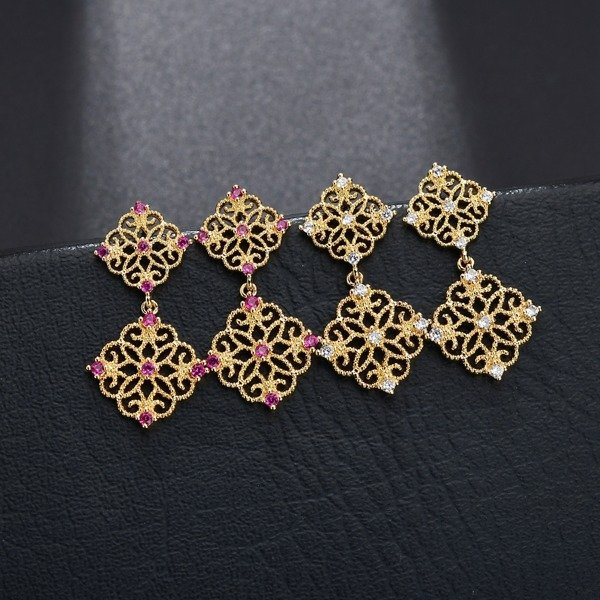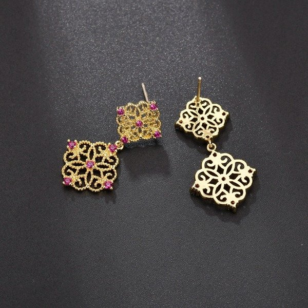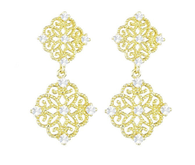 Złocone kolczyki z elementami w kształcie ażurowych rombów . Kolczyki są lekkie idealne do zwiewnych weselnych kreacji.