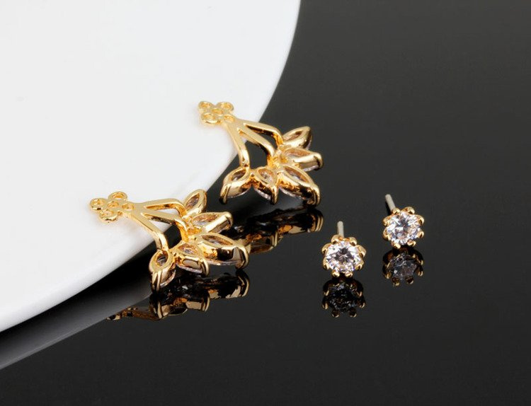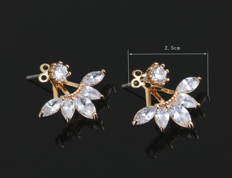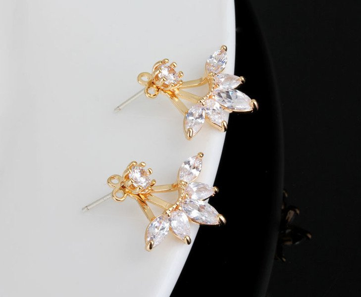 Kolczyki składają się z dwóch części- krótszej (cyrkonia na sztyfcie) oraz dłuższa zakładana z tyłu za płatkiem ucha (łuk z cyrkoniami). Można nosić obie części lub tylko górną część.