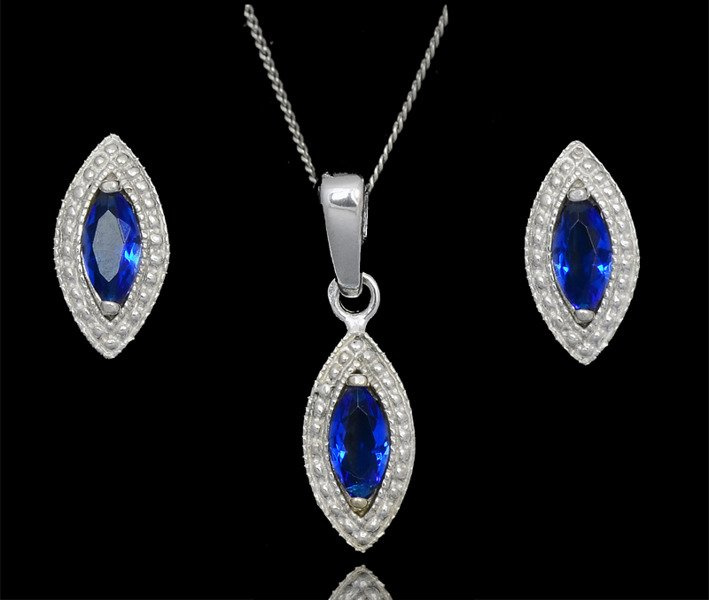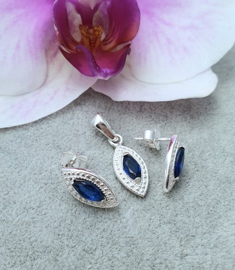 480/63 komplet srebrny szafirowe cyrkonie